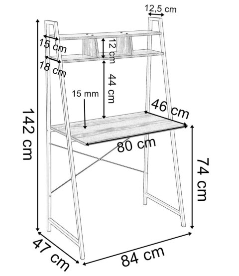 Wymiary górnej półki 80 cm x 15 cm x 1,5 cm