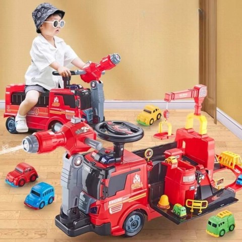 Funkcjonalność i mobilność: Skrętne koła zapewniają łatwe manewrowanie, a schowek pod siedzeniem umożliwia wygodne przechowywanie mini pojazdów oraz dodatków.