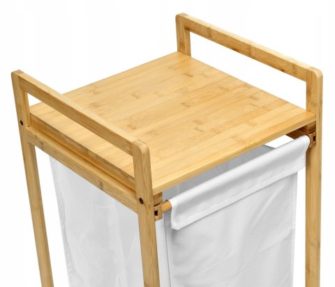 Bambusowy kosz na pranie Hanoi to estetyczny i pojemny kosz, który pomieści mnóstwo odzieży. Wykonany ze szlifowanego bambusa, nie ma ostrych krawędzi, jest przyjemnie gładki i starannie wykończony. Górna półka może służyć jako miejsce na akcesoria łazienkowe, środki piorące, a także jako miejsce na dekoracje czy świece zapachowe. Kosz posiada szyny, które ułatwiają napełnianie i opróżnianie materiałowego worka. Dzięki nim cały worek można wysunąć i przetransportować. Materiał przypięty jest na rzep, można go zdjąć i wyprać. Hanoi złożysz bez wiercenia i specjalistycznych narzędzi. Montaż zajmuje dosłownie chwilę, a wszystko co niezbędne do jego złożenia znajdziesz w zestawie.