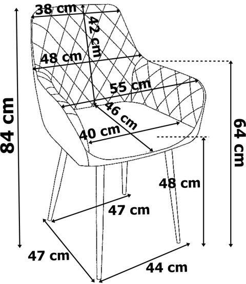 Tapicerowane krzesło z ciekawym, pikowanym wzorem w romby. Ciekawy i wyrazisty wzór, który idealne wkomponuje się do wnętrz w stylistyce loft lub glamour, nadając nieco ciepłego wyrazu. Siedzisko jest wyprofilowane i zapewnia komfortowe oparcie dla pleców. Metalowy stelaż krzesła zapewnia stabilne podparcie na każdej powierzchni. Kupując u nas, kupujesz od bezpośredniego producenta!