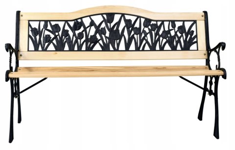 Klasyczny dekor ławki ogrodowej Tulipan idealnie wpisze się w piekno Twojego ogrodu. Solidne, żeliwne nogi ławki przetrwają długie lata, podobnie jak piękne drewno, z którego wykonana jest ławka.