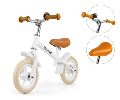 Wytrzymałe opony na białych felgach, z pianki EVA są wytrzymałe i nie wymagają pompowania. Ergonomiczne siodełko z miękkim wypełnieniem oraz możliwością regulacji wysokości sprawia, że rowerek rośnie razem z dzieckiem.
