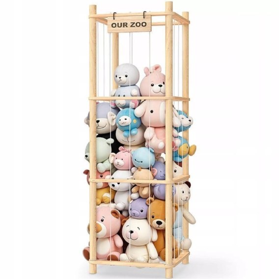 Regał na Pluszaki Organizer na Zabawki Drewniany Stojak Kosz Pojemnik