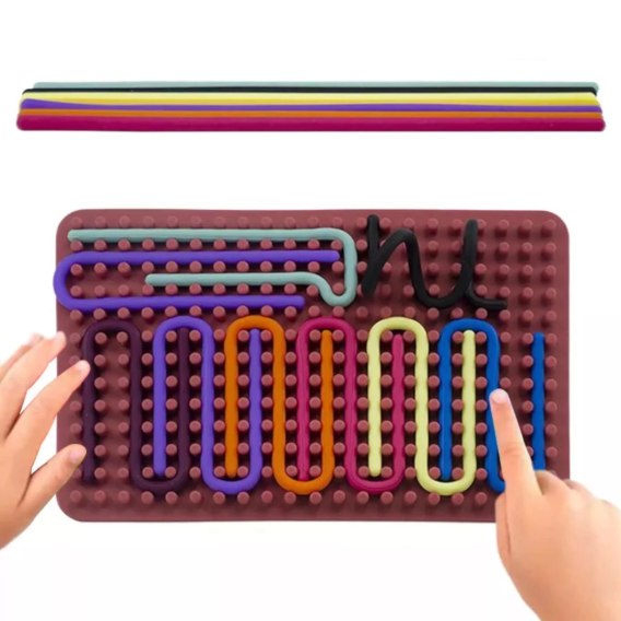 Jedna strona zawiera wypukły wzór labiryntu, który zachęca do tworzenia pierścieni, mostów i innych struktur, rozwijając precyzję ruchów oraz planowanie przestrzenne.