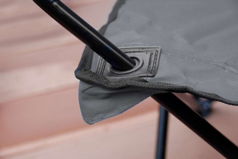 Krzesełko posiada praktyczny pokrowiec z uchwytem, dzięki czemu można je łatwo przenosić w dowolne miejsce. Poręczna kieszonka na kubek, puszkę i inne drobne przedmioty umożliwia łatwy dostęp do nich podczas siedzenia. Podwójne szwy i solidne, metalowe rurki zapewniają wytrzymałość i bezpieczeństwo podczas użytkowania.