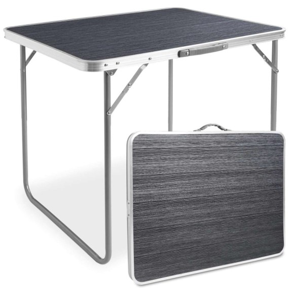 Klasyczny składany stół turystyczny i kempingowy. Wykonany z wysokiej jakości materiałów. Na całość składa się stalowo-aluminiowa konstrukcja oraz blat z płyty MDF. Takie połączenie materiałów zapewnia niską wagę, dzięki czemu transportowanie stolika jest bezproblemowe. Rozkładanie stolika jest bardzo proste. Stolik wyposażony został w rączkę, która umożliwia wygodne przenoszenie.
