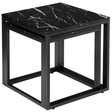Zestaw stolików Praven to połączenie elegancji i funkcjonalności, które odmieni Twoje wnętrze. Idealnie sprawdzą się w salonie, biurze czy pokoju gościnnym, oferując praktyczne rozwiązanie w stylowym wydaniu. Możesz ustawić je razem, tworząc dynamiczną aranżację, lub osobno - w zależności od potrzeb. Regulowane nóżki zapewniają stabilność nawet na nierównych powierzchniach, a solidna metalowa konstrukcja gwarantuje trwałość na lata. Zastosowanie laminowanego blatu o wyglądzie marmuru sprawia, że stoliki są eleganckie i łatwe w utrzymaniu czystości. Dodatkowym atutem jest możliwość wsunięcia mniejszego stolika pod większy, co pozwala zaoszczędzić miejsce, gdy nie są w użyciu.