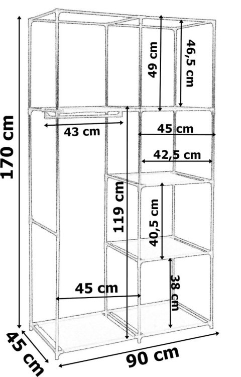 Szafa wykonana ze stalowych ramek tworzących jej szkielet. Na stelaż nałożony jest oddychający dobrej jakości materiał wraz z nadrukowanym widokiem. Jest łatwa do utrzymania czystości i praktyczna, półka idealnie nadaje się do przetrzymywania czapek, szalików, rękawiczek lub innych drobnych rzeczy. W głównej części szafy jest także możliwość zawieszenia ubrań na wieszakach. Lekka i solidna konstrukcja w dowolnej chwili możesz ją złożyć, przestawić.