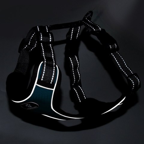 Treningowe szelki bezuciskowe dla psa sprawdzą się idealnie na spacerze w każdych warunkach pogodowych. Wykonano je z materiałów najwyższej jakości, dzięki czemu są mocne, wodoodporne ale i oddychające. Nie uciskają zwierzęcia, zapewniając mu bezpieczeństwo i komfort. Są bardzo bezpieczne-smycz wpina się w mocny, metalowy zaczep. Klamry mają dodatkowe blokady, więc pies nie uwolni się sam. Obwód uprzęży można regulować w zakresie podanym w specyfikacji. Szelki posiadają dodatkowe elementy odblaskowe, dzięki czemu pies będzie dobrze widoczny nawet w ciemności.