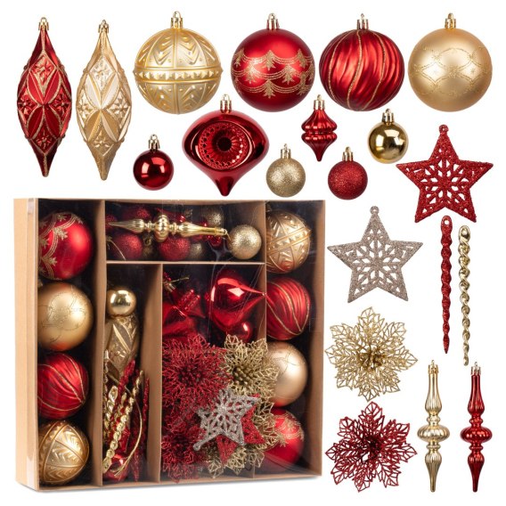 Zestaw bombek choinkowych MARIEN CZERWONO-ZŁOTY 70 sztuk