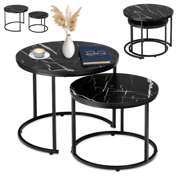 Zestaw dwóch stolików loft Galen Small Czarny Marmur