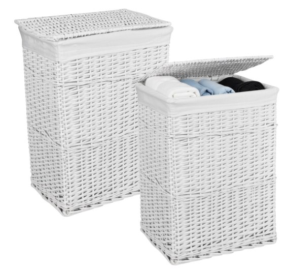 Zestaw koszy wiklinowych białych 72 L i 114 L
